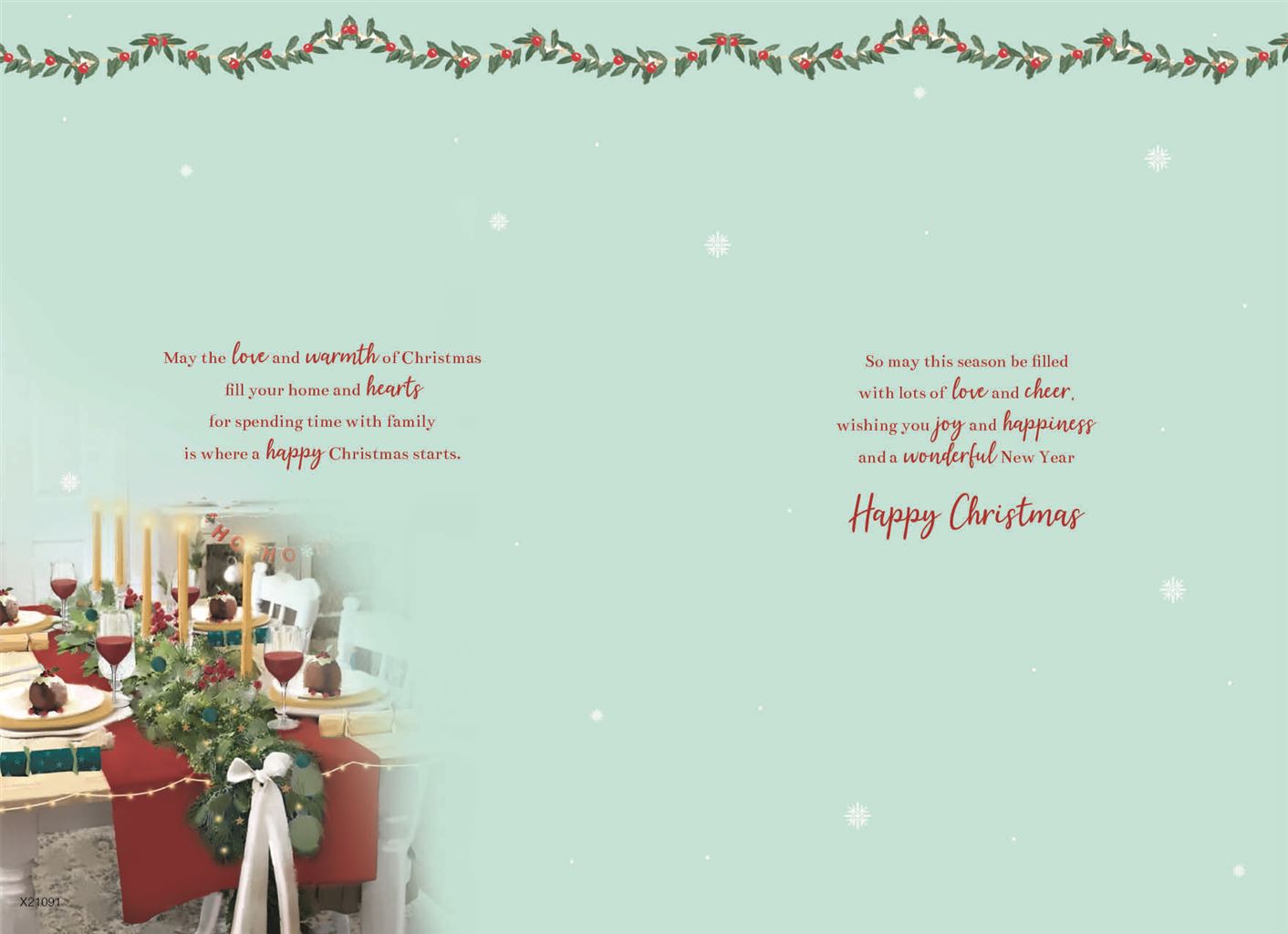 Verse: | For a wonderful Grandson and family May the love and warmth of Christmas Fill your home and hearts For spending time with family Is where a happy Christmas starts. So may this season be filled With lots of love and cheer, Wishing you joy and happiness And a wonderful New Year Happy Christm |