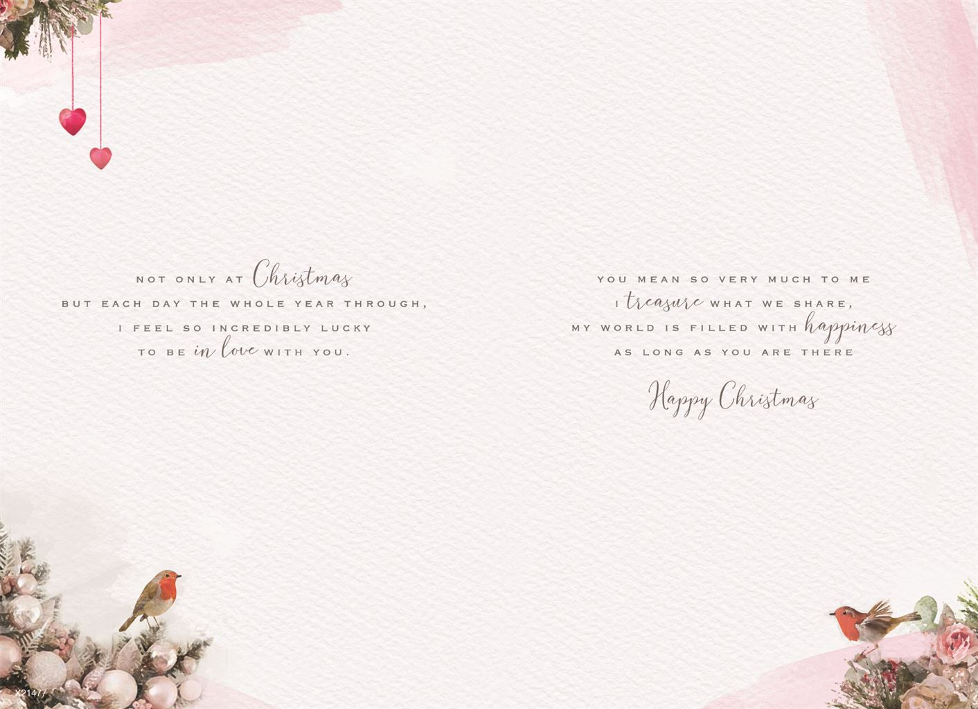 | Verse: | For a very special Wife at Christmas Not only at Christmas But each day the whole year through I feel so incredibly lucky to be in love with you You mean so very much to me I treasure what we share, My world is filled with happiness as long as you are there Happy Christmas |