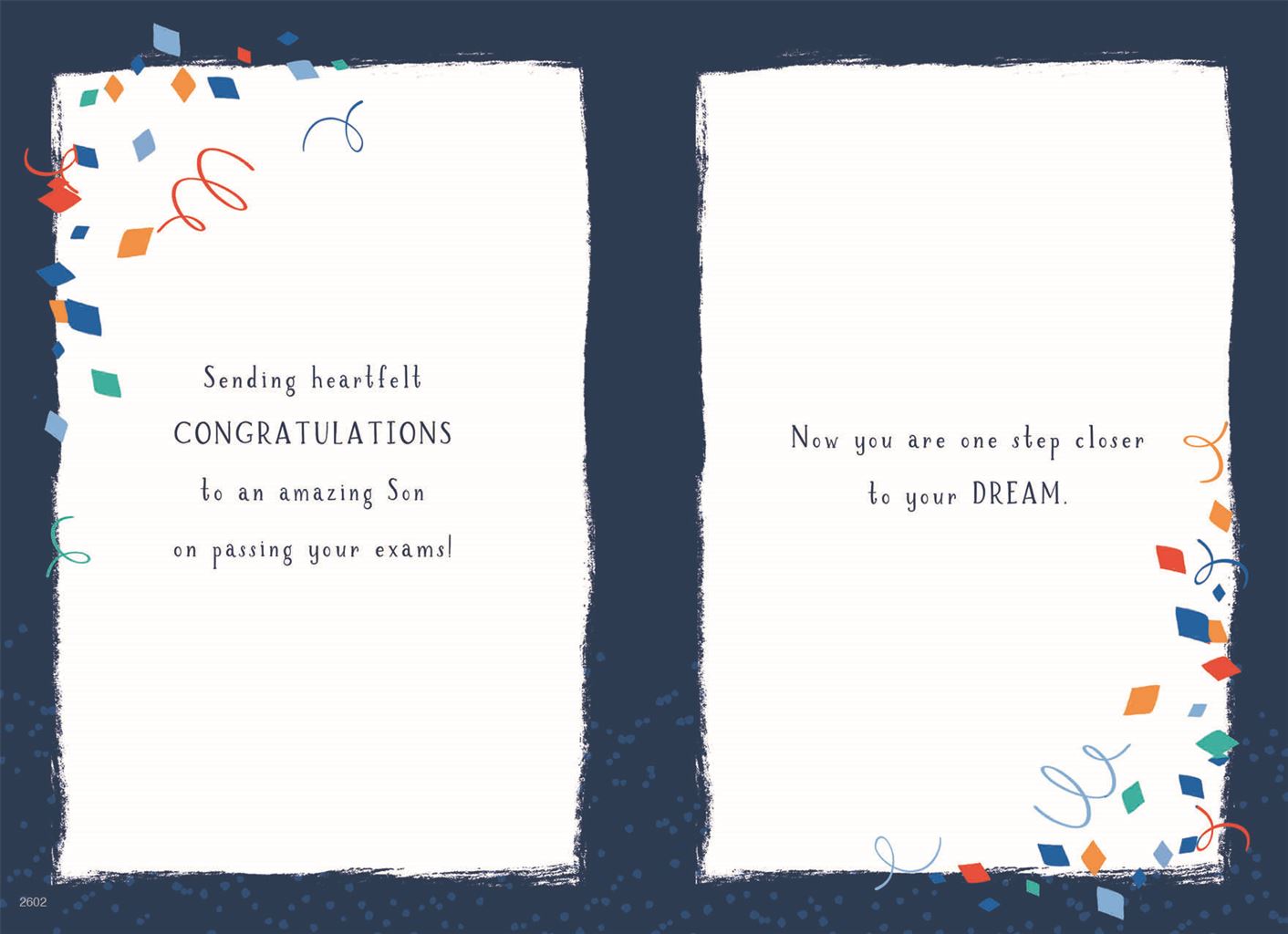 Congratulations Son on passing your exams Sending heartfelt Congratulations to an amazing son on passing your exams! Now you are one step closer to your dream.