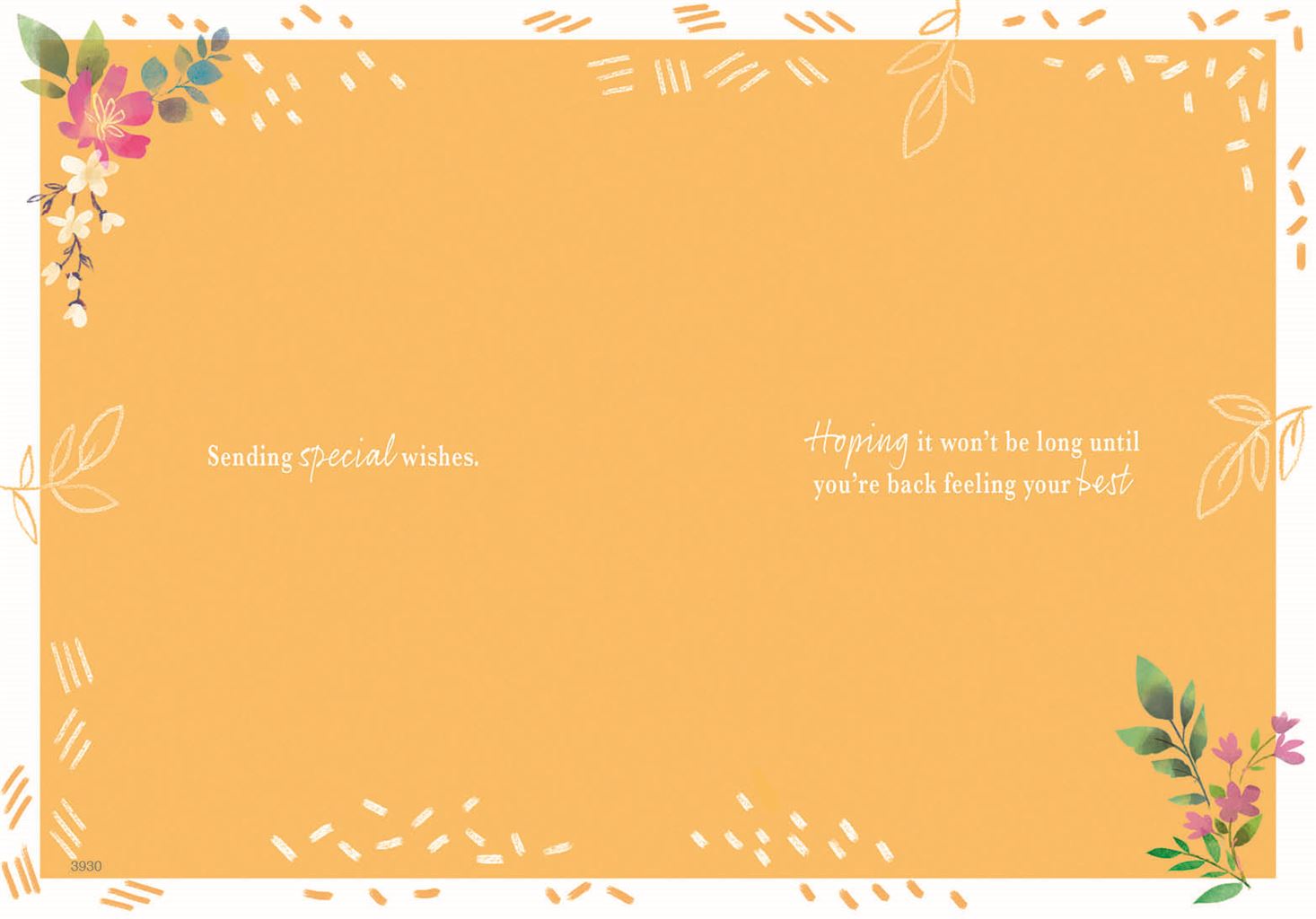 | Verse: | GET WELL SOON Sending special wishes Hoping it won’t be long until You’re back feeling your best |
