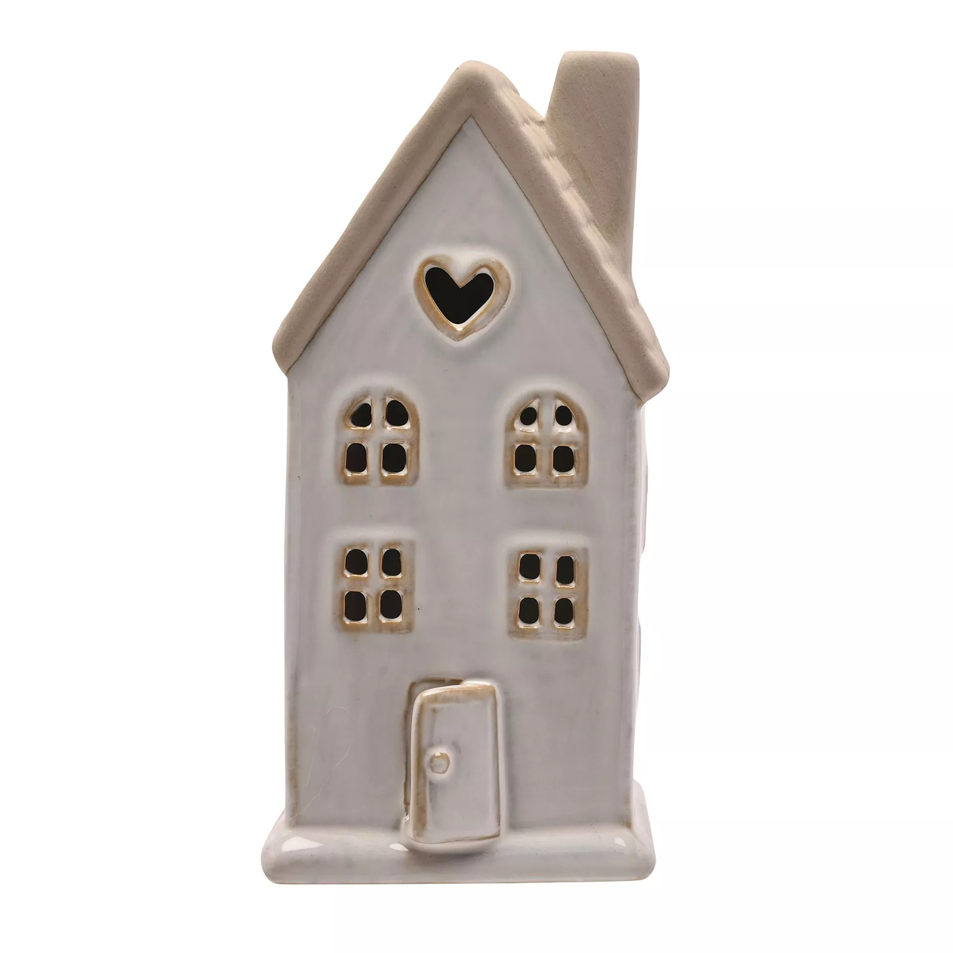 Introducing our delightful Medium Ceramic LED House. With its quaint heart-shaped window and multiple front windows, it's a charming addition to any festive home. • Ceramic construction for a rustic feel • Integrated LED lights to create a warm glow • Heart-shaped window adds a touch of whimsy